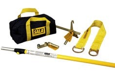 One of the most common challenges in creating a safe at height working environment is the establishment of a safe anchorage point for attachment of a personal fall arrest system. Often the only approved anchorage points exist overhead, out of reach of workers. The First Man Up™ Pole System assists in the installation and removal of DBI SALA tie off adaptor anchorage connectors and vertical lifelines where overhead installation is required, and where no access to the anchorage point is available. The system utilizes a telescoping pole and adaptor tool to place and securely anchor a tie off adaptor to an overhead anchorage point. It also incorporates a snap hook connector tool to securely attach a vertical lifeline (or other device) to the tie off adaptor. Setup, installation and removal is quick and easy; the system can be stored in the included carrying bag.