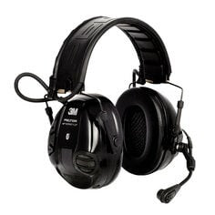 3M™ PELTOR™ Wireless Series 100 Communications Headset with Bluetooth® wireless technology helps protect workers from hazardous workplace sounds while making it easy to communicate, listen to music, or talk on the phone. Unique level-dependent technology helps improve awareness by boosting lower level sounds like voices, while limiting louder, potentially hazardous sounds. These innovative headsets have an output limit of 82 dBA to help reduce exposure to loud sounds and enhance worker safety by making it easier to hear conversation, warning signals and approaching vehicles. This hearing protection system is ideal for anyone who enjoys listening to music in high-quality stereo sound and needs the ability to communicate via a wireless Bluetooth® phone while in noisy environments. Bluetooth® connection controls on the left side of the headset make it easy to accept or reject phone calls. Music is automatically reduced during phone conversations and resumes when a call is completed.