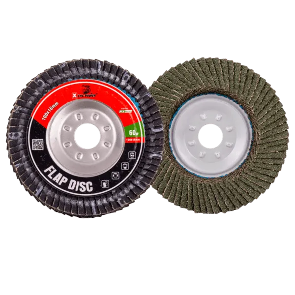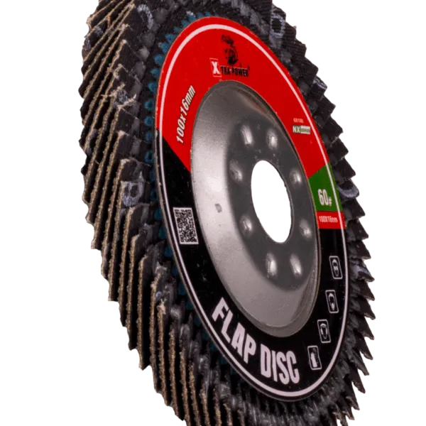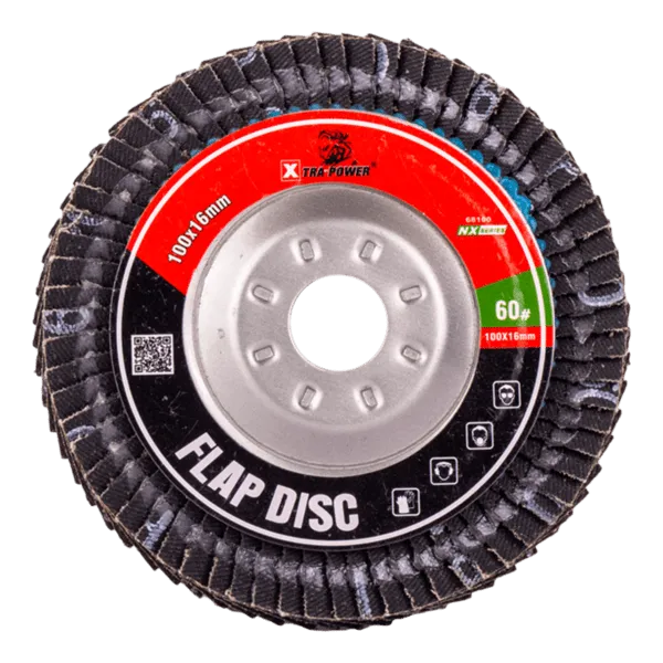 Surfing for the ideal Flap disc? The Xtra Power Flap Disc NX is designed for heavy-duty debris removal on flat surfaces. It is a high-performance metal flap disc. The disc’s surface area is ideal for heavy-duty use and it incorporates a coarse metal flap that resists wear. The blunt edge on the stock side provides maximum contact area with the grinder’s removing and plunging action, with added power for fast stock removal. This heavy-duty flap disc with a bold and sharp edge has higher longevity and better performance than standard flap discs. This flap disc has greater wear resistance. The hole design makes this flap disc perfect for use with electric angle grinders