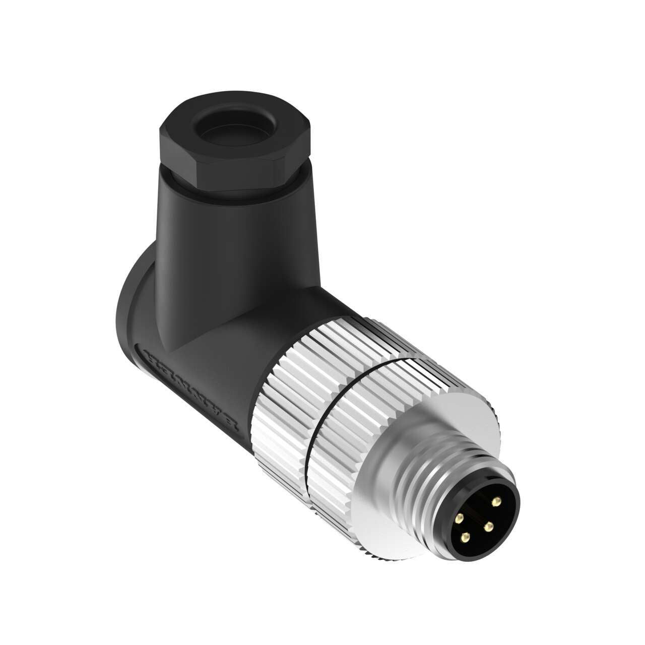 The BFW-M8M4A-4X Field Wireable Connectors are high-quality, durable connectors designed for industrial applications that require reliable field wiring. Featuring a 4-pin M8 male connection with a right-angle orientation, these connectors ensure stable power and signal transmission. They are compatible with cables that have an outside diameter ranging from 3.5 to 5 mm. The connectors are made with a nickel-plated brass coupling nut for durability and a black PA + GF overmold material for added protection, making them ideal for use in automation systems, sensors, and control setups in demanding industrial environments.