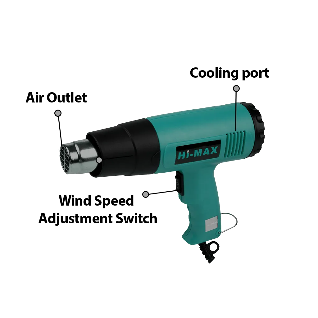 Looking for an amazing hot air gun for mechanical applications? HI-MAX IC-082 with a heat temperature of 600° Celsius for the heat gun. The hot air gun has a stronghold on the body. It enables a load-free speed of 240/480 L/ Min for quick and reliable quality. The stunning motor with a reach commitment of 13 CM conveys a collection of tasks incredible with a grown fly of air that can be composed to a specific point or surface. The hot air gun is ideal for various activities and materials as it might be used for removing clasps and screws, loosening up concrete, stripping paint, pulling back hose, defrosting lines, disintegrating metal, and plastic, or welding different materials together.