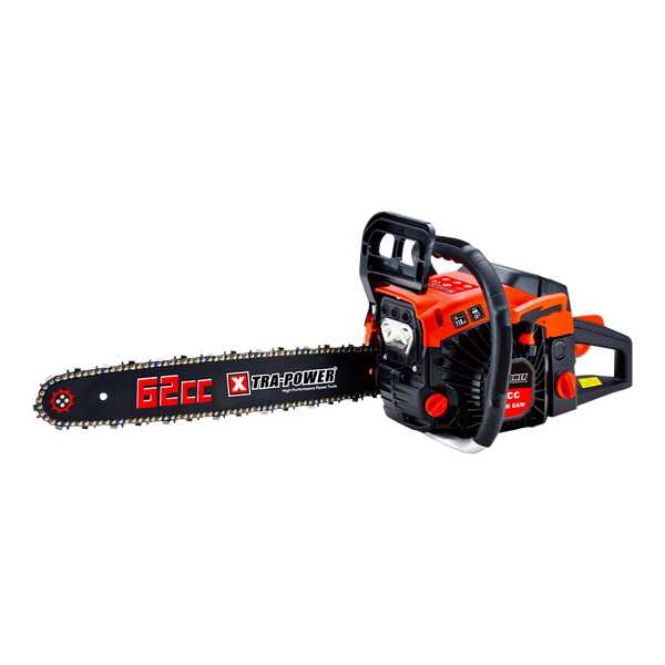Xtra Power XPT 588 Chain Saw Machine, a state-of-the-art tool tailored for challenging cutting tasks. Upgraded to a 2.7 kW, it capably handles demanding work like felling substantial trees and slicing firewood. Its engine displacement is enhanced to 62 cc, delivering robust performance consistently. This model keeps the Easy2Start system and a decompression valve for an effortless startup and maintains a low-vibration design for comfortable, prolonged use. Its versatility is ideal for various cutting jobs, from large-scale felling to meticulous trimming, supported by an adjustable oiler for customized oil flow. User safety remains a priority with features like a chain brake to mitigate kickback and a throttle lockout to prevent unintended activation. Now featuring a fuel tank capacity of 0.55 L and an oil tank capacity of 0.26 L, it guarantees extended operation with fewer refills. The XPT 588 Chain Saw Machine, now enhanced, continues to be an indispensable ally for professionals such as loggers, arborists, and homeowners who require efficient property maintenance.