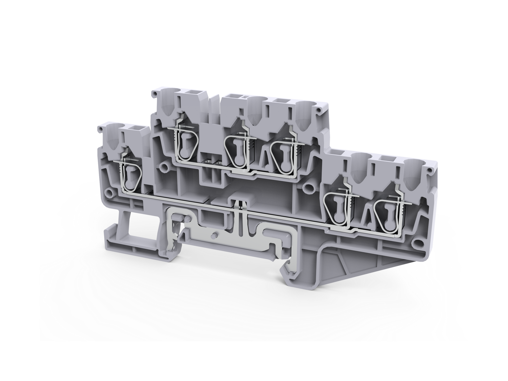 CXDLG2.5/3 is a Double level Multiconnection Spring Clamp Ground Terminal Block used in high density wiring applications.