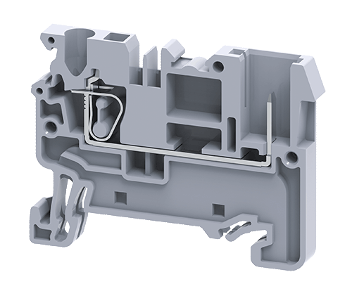 The Spring Clamp is operated by using a screw driver to provide an access to the wire through an opening in the spring clamp. The inserted wire gets clamped on to the current bar when the screw driver is removed. One side can be plugged with CX2.5PN plugs. |