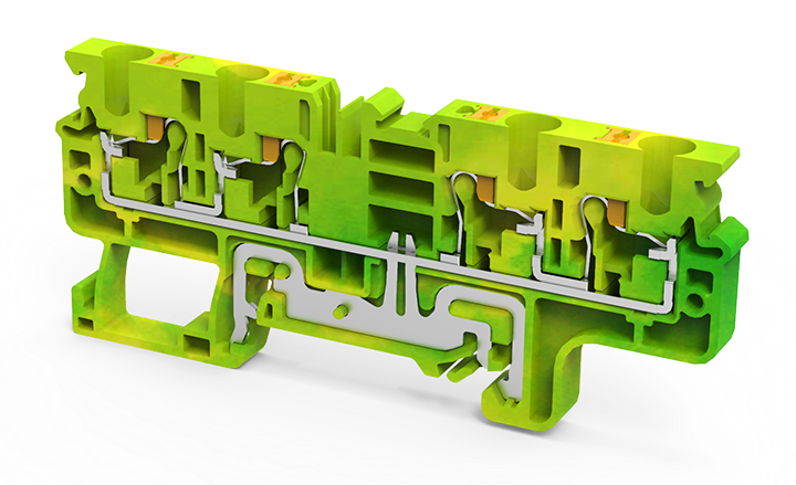 These Terminal Blocks have specially designed alloy feet which help in achieving very low contact resistance and vibration proof grounding with the DIN rails. They green/yellow colour coded as industry standards.