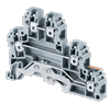 These blocks are ideal for use in application requiring high density wiring. Interconnection shorting is possible at both levels. The CDLG2.5 is a double level terminal block with as additional connection point for earthing (Grounding) cables. This separate connection point is appropriately identified by the green yellow imprint on its top.