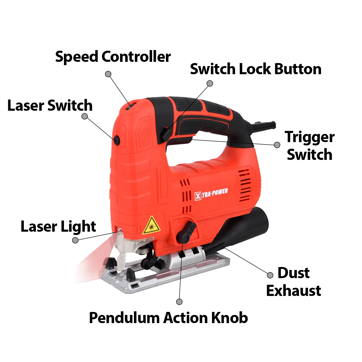 The Xtra Power Jig Saw XPT Series is a testament to advanced engineering, featuring a powerful 800-watt motor that serves a wide range of cutting tasks. Its laser light guidance ensures unmatched precision, guiding each cut with clarity and accuracy. The addition of a pendulum adjustment knob allows for swift alterations in the blade's motion, tailoring it to the material's thickness for efficient and swift cutting. With a variable speed controller, users gain unparalleled control over the cutting process, adapting the tool's performance to the task at hand. This Jig Saw merges power with precision, embodying the ideal tool for detailed and demanding cutting tasks.