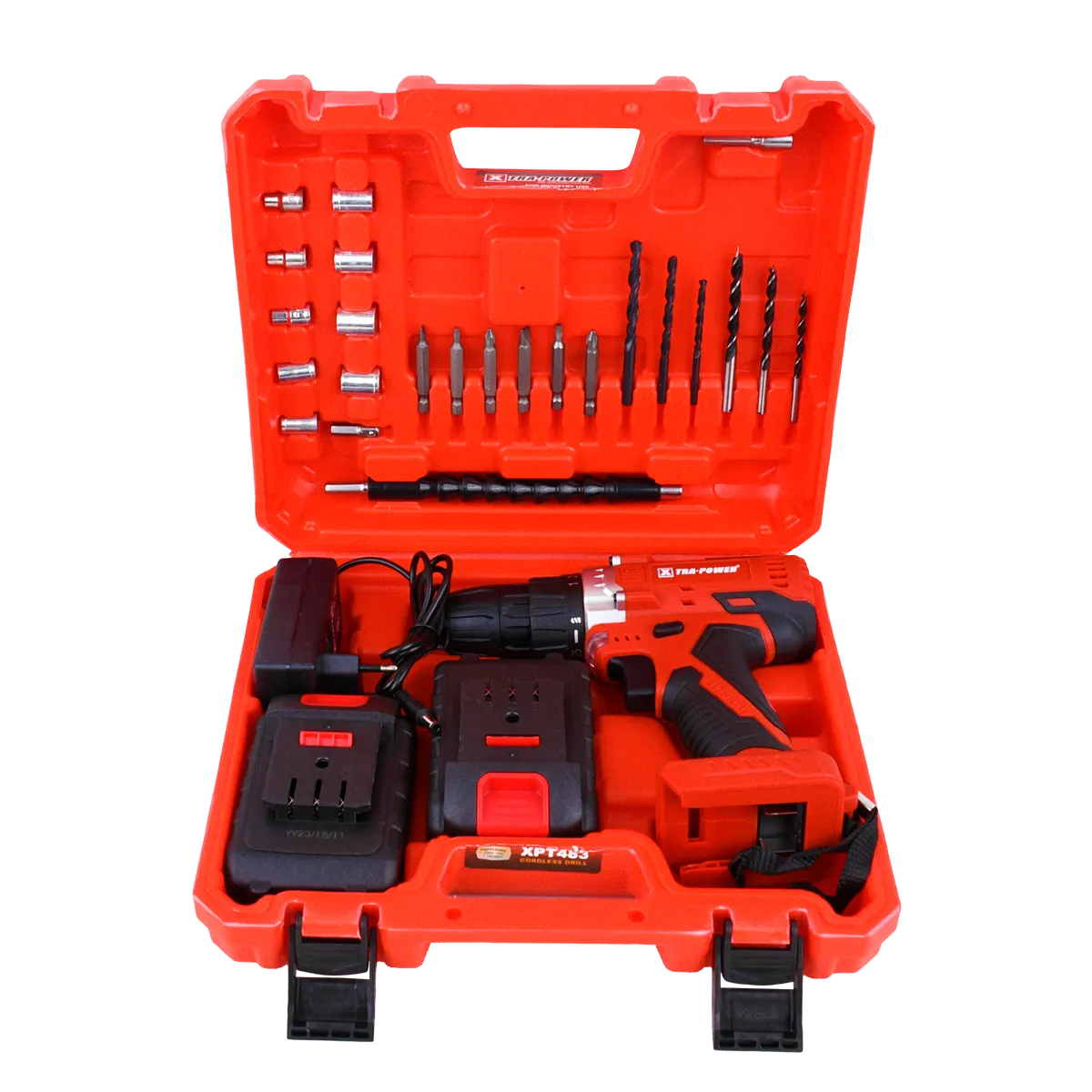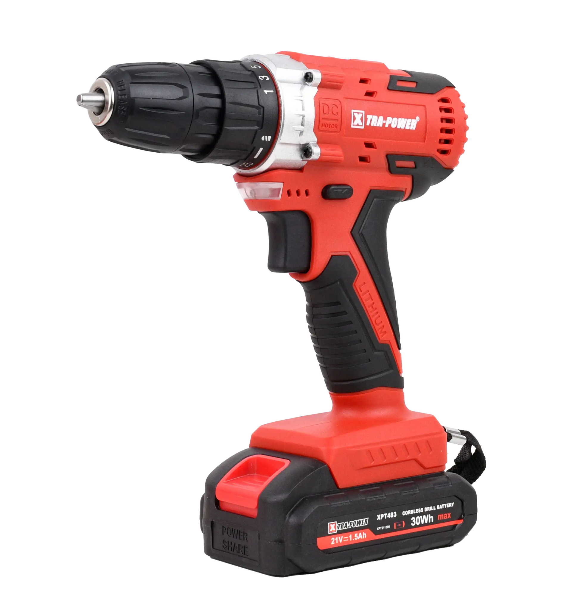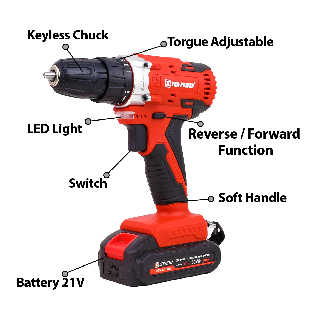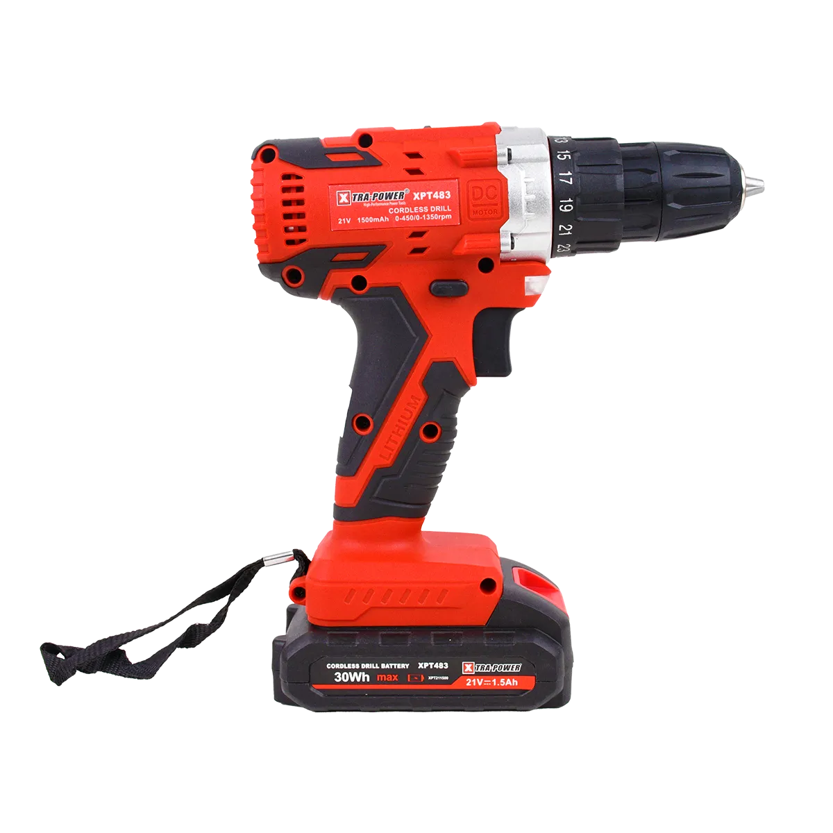 The XTRA-POWER XPT 483 Cordless Drill is a versatile and powerful tool designed for a variety of tasks. One of its key features is its cordless design, offering portability and ease of use without the constraints of a power cord. It operates on a 21-volt power supply, ensuring strong and consistent performance. The drill boasts a no-load speed 1350 RPM, providing flexibility and efficiency for various drilling tasks. This range of speed options allows for precision and control, especially in different materials and applications.