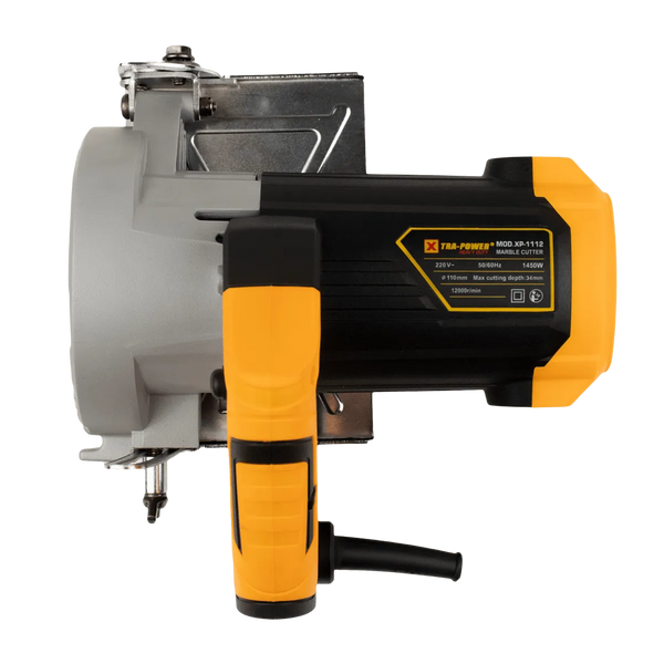 Planning to look for an efficient, convenient marble cutter for industrial tasks? XTRA-POWER HEAVY DUTY XP-1112 with a plate of 110 mm in diameter with controllable cutting depth. It enables you a load-free speed of 12000 RPM for fast and reliable results. A compelling electric motor with a power input of 1450 watts makes cutting effective. The marble cutter is feasible for multiple components as it can be used for cutting discs (diamond saw blade). It's designed to have a fair and firm grip on the superlative body.