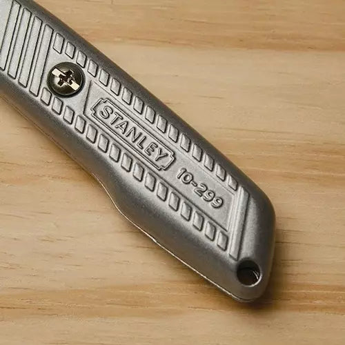 Upgrade your cutting tools with the STANLEY 10-299 Aluminum Manual-Retractable Fixed Blade Utility Knife. It's not just a utility knife; it's a commitment to quality, functionality, and durability that defines the STANLEY brand. Choose this utility knife for precise and efficient cutting in your various projects, providing the performance you can trust.