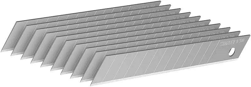 The pack of 10 blades ensures that users have an ample supply for continuous and future projects, providing convenience and minimizing the need for frequent replacements. Whether engaged in woodworking, crafting, or other cutting applications, these snap-off blades from STANLEY offer a reliable and efficient cutting solution.