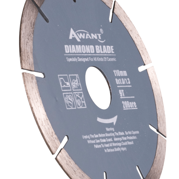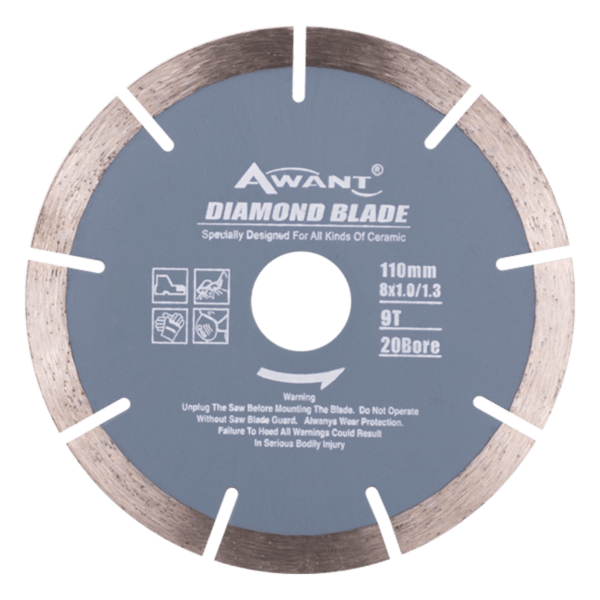 Want an SEG blade crafted for Ceramics only? Awant Ceramica Blade is a fast performer and highly efficient blade in the market, offering optimum results in the minimum possible time. This is a well-crafted blade suitably designed for ceramics of all kinds. Apart from Ceramics, the blade also delivers its best performance on various surfaces like porcelain, vitrified tiles, glasses, etc. Awant Ceramica Blade is a segmented blade with a 20 mm arbor hole which is well fitted for use on marble cutter and portable angle grinders. It is used for Dry and Wet cutting operations. At the same time, wet-cutting is highly recommended because silent back keeps operation noise to a minimum and the lowest dust in the air makes the working condition safe for the operator.