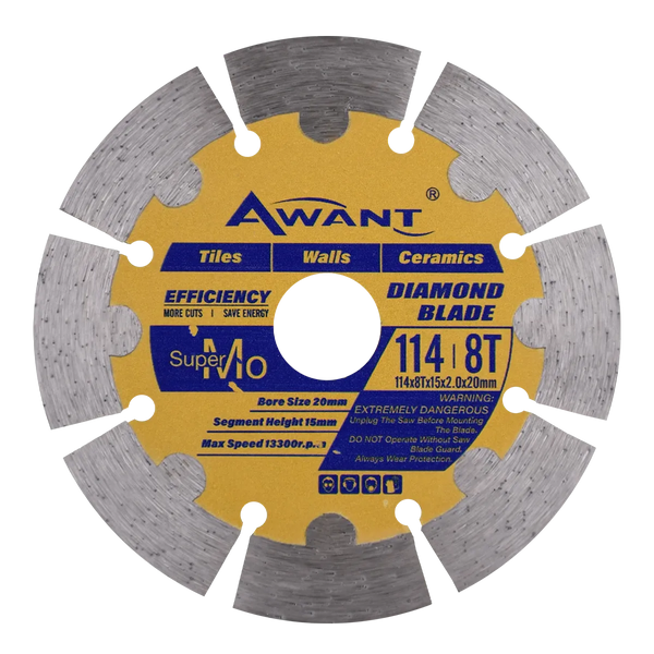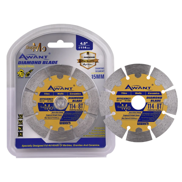 Do you want a blade to work on ceramics, tiles, and walls? Awant Supremo, a diamond saw blade that you can use with your industrial portable angle grinder and marble cutter. It is an excellent alternative for working on ceramics and tiles of all kinds. You can carve cuts and grooves on walls using this exclusive blade. Awant Supremo is a type-8 Segmented Blade suitable for dry and wet cutting jobs. Using the diamond saw blade with the water is advisable to last long without getting chipped. Awant Supremo helps in cutting and shaping the surface with ease and convenience. This blade is a revolution in the construction sector as its sturdiness, performance, capability, and longevity is incomparable. It is a safe operating blade when used with compatible industrial machines.