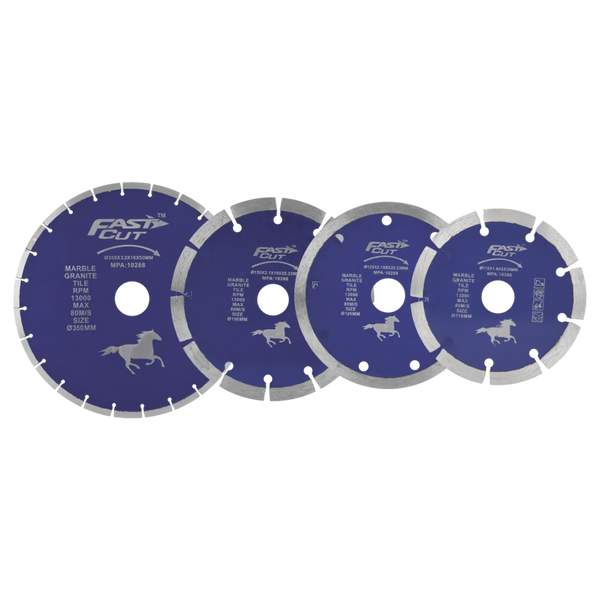 Are you looking for an easier cutting job on the hardest slab effortlessly? FAST CUT BLADES that run smoothly upon the surface of Marble, Ceramic Tiles, Concrete, Granite and such, leaving it into two pieces: Debris Fine-finished product. The Hot-pressed technology has been used to develop the superfine quality of the blade that promises the durability and robustness of the blade. FAST CUT BLADES offers two variations: SEG and RIM, which are available in various Arbor Hole size to match your Industrial Tools. The blade performs efficiently at high speed and is known for superior and sharp edges designed for faster-cutting jobs. FAST CUT BLADE delivers excellent results when used for Wet cuts.