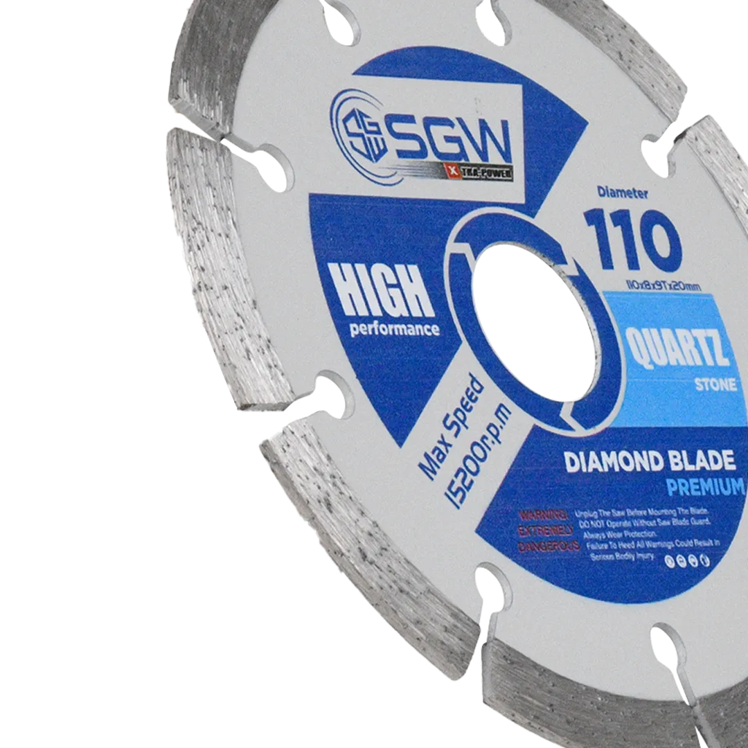The SGW Quartz Stone Diamond Saw Blade is meticulously designed for optimal performance in cutting quartz stone, delivering precision and efficiency. This blade is crafted to ensure smooth and rapid cuts, minimizing chipping and maximizing cutting speed. Tailored to meet the needs of a variety of cutting tasks, the SGW Quartz Stone Blade is compatible with an array of machines, offering versatility for professionals working with quartz and other hard materials. Its engineered design prioritizes user experience, focusing on reduced vibration and enhanced blade longevity, making it a reliable choice for detailed work in quartz fabrication. With careful consideration of the technical aspects of quartz cutting, this blade is a vital tool for achieving flawless results in both industrial and artisan applications.
