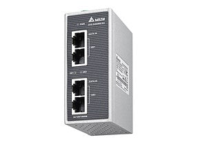 The DVS-G402R00-INJ is an industrial-grade Ethernet switch designed to provide high-performance network connectivity in automation systems. It features Power over Ethernet (PoE) capabilities, allowing it to supply power to connected devices like cameras, access points, and sensors, in addition to network communication. This switch is ideal for industrial environments that require reliable, scalable networking solutions for devices such as IP cameras, wireless access points, and other PoE-enabled equipment, commonly used in automation, security, and monitoring applications.