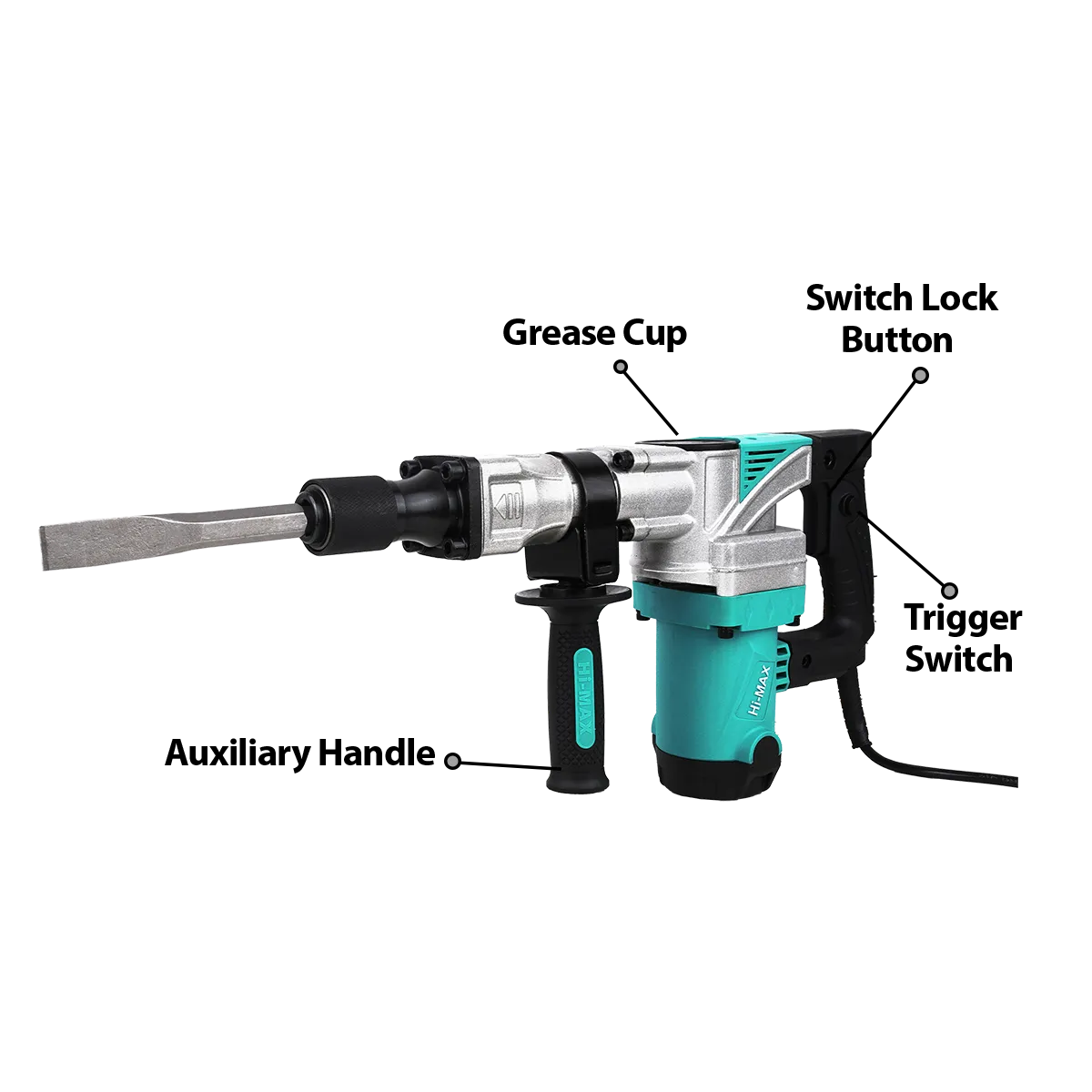 The Hi-Max IC-055 Demolition Hammer is a powerhouse tool designed for heavy-duty demolition tasks, standing out with its robust performance and durable design. Engineered with a potent 1300-watt motor, this 7KG demolition hammer offers exceptional power, making it a must-have for professionals in construction, renovation, and demolition fields. It boasts a high-efficiency motor that enables users to tackle demanding demolition tasks with ease, ideal for breaking through concrete, asphalt, masonry, and more. With a no-load speed of 2900 RPM, the Hi-Max IC-055 provides optimal control and efficiency, featuring a Hex 17MM tool holder for easy and quick tool changes, thereby enhancing productivity. Its ergonomic design, including an ergonomic grip, reduces fatigue and ensures comfortable operation over extended periods, while its balanced weight distribution and robust construction offer precise control. Suitable for a variety of demolition tasks such as breaking concrete and asphalt, trenching, tile removal, and making openings in walls and floors, the Hi-Max IC-055 is chosen for its powerful performance, durability, versatility, and comfort, meeting the needs of both professional contractors and DIY enthusiasts looking to tackle any demolition task with confidence.