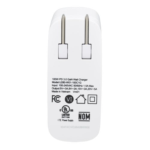 Travel-sized USB-C charger provides up to 100W to quickly and efficiently charge your smartphone or laptop at home or on the move.