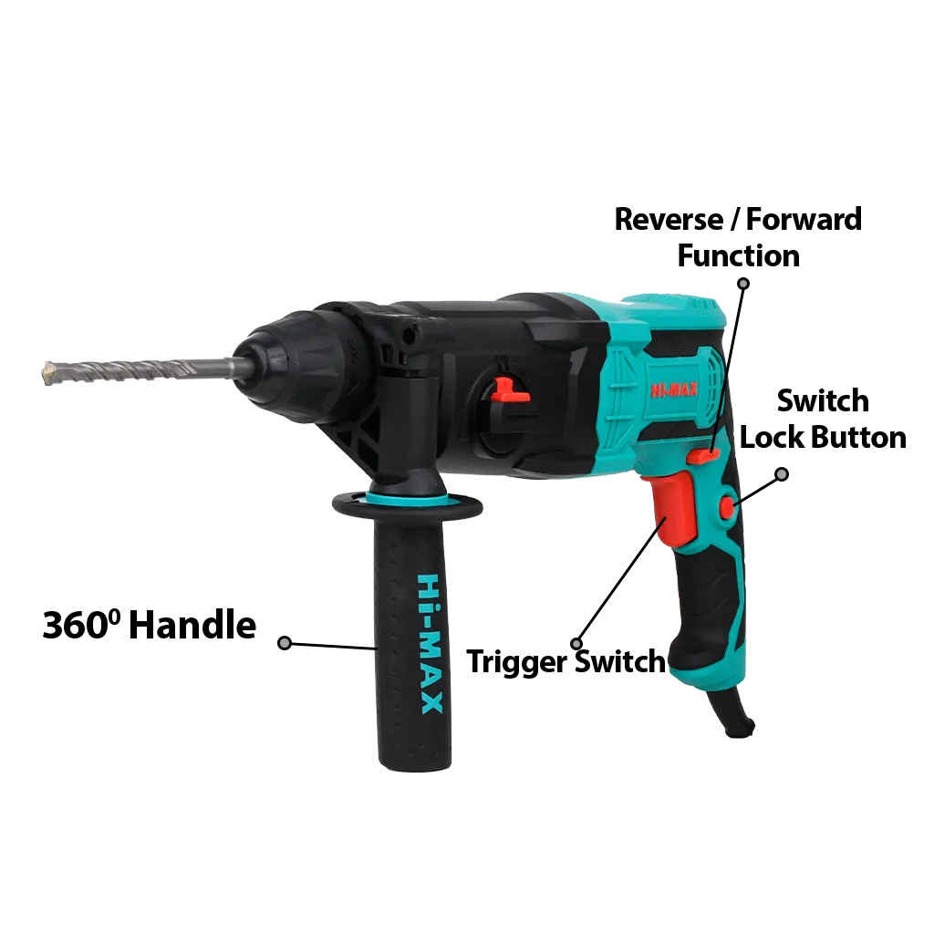 Meaning to locate a compelling and helpful rotary hammer for heavy-duty errands? HI-MAX IC-034 with a drill measurement of 26 mm and a sensible drill profundity. This guarantees a load-free speed of 1300 RPM for a solid and moderate exhibition. IC-034 gives three functions: rotary, hammering, and rotary hammering. The convincing electric motor with an input force of 850-watts makes the boring and etching of hard materials productive. The rotary hammer is attainable for the exhibition of substantial assignments since it utilizes a piston mechanism instead of a special clutch. It is worked to have a reasonable and firm grasp on the uncommon body.