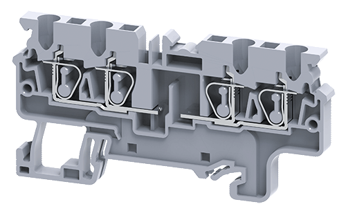 CX2.5/4P is 4 conductor double potential terminal block with two connection points for two different system voltages. One side of the Terminal Block can be shorted with standard insulated push-in jumpers.