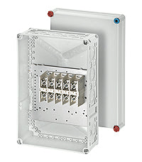 - 5-pole per pole 2 x 10-95 mm², conductors can be inserted from the front into the clamping unit, terminal technology, see annex DK Cable junction boxes