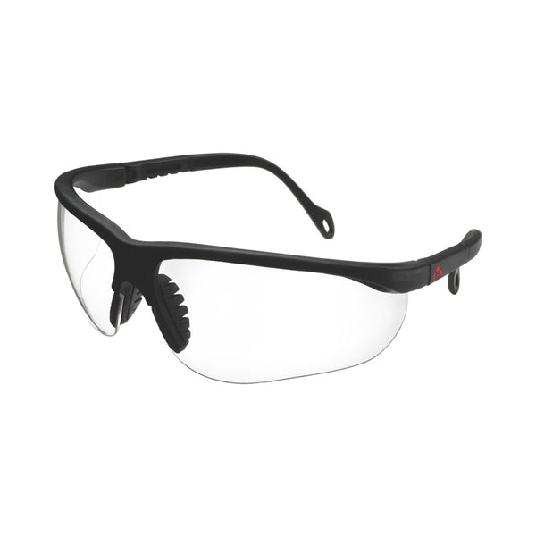 - It has an adjustable temple length and flexible nose pads. It provides frontal, lateral impact resistance. It is hard-coated for scratch resistance.