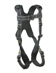 PVC coated back D-ring, Nomex®/Kevlar® fiber webbing and comfort padding, PVC coated pass-thru buckle leg straps (size Small).