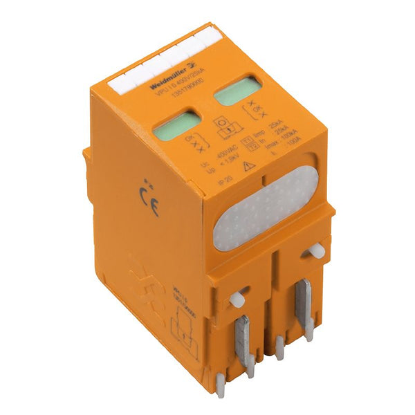 The VPU I 0 400V/25KA is a voltage protection unit for AC systems. "I" likely refers to a specific protection class or type. "0" may indicate protection for a single circuit or a specialized configuration, potentially without a neutral connection. "400V" represents the voltage rating, and "25KA" indicates the surge current rating, meaning the unit can withstand up to 25 kA of surge current. This unit is designed to protect electrical equipment from voltage surges, offering reliable protection in systems where higher surge current handling is required, typically used in industrial or commercial applications.