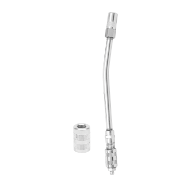 The Groz Coupler to Coupler Extension, featuring a 6" (150 mm) angled delivery tube and a 4-jaw professional coupler that is fitted onto the quick disconnect adaptor, serving as a length extension for your lubrication needs. Designed to fit straight onto the grease gun coupler, our extension provides seamless integration and reliable performance for your lubrication tasks. With the inclusion of both small and large locking sleeves, our Coupler to Coupler Extension ensures a perfect fit for all types of couplers, offering versatility and convenience for your industrial lubrication processes. Simplify your maintenance tasks and optimize your lubrication process with our durable and reliable Coupler to Coupler Extension. Experience the ease and efficiency of our product for all your industrial lubrication needs today.