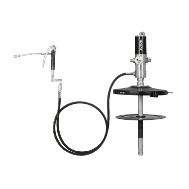The Groz Air Operated Grease Ratio Pumps are the ultimate solution for high-pressure grease pumping. These pumps can effortlessly dispense grease up to 50 times the air inlet pressure. Ideal for industries, workshops, farms, construction sites or as a part of mobile grease systems. Crafted with precision, the all-metal construction with hardened wear-resistant components ensures long-lasting reliability. The 2-1/2" (63 mm) diameter air motor, driven by a reciprocating piston, guarantees consistent operation. A strategically placed strainer at the suction tube inlet ensures clean grease delivery to bearings. The Groz Air Operated Grease Ratio Pumps can provide the maximum grease output of 2.42 lbs./min. (1.10 kg/ min.). Comes complete with a drum cover, rubber lined follower plate, 7’(84”) high-pressure grease hose and a swivel & professional grease control valve. Available in different suction tube lengths that fit 12.5 kg to 180 kg (25-400 lbs.) drum sizes. Enjoy high-quality, reliable and efficient grease pumping every time.