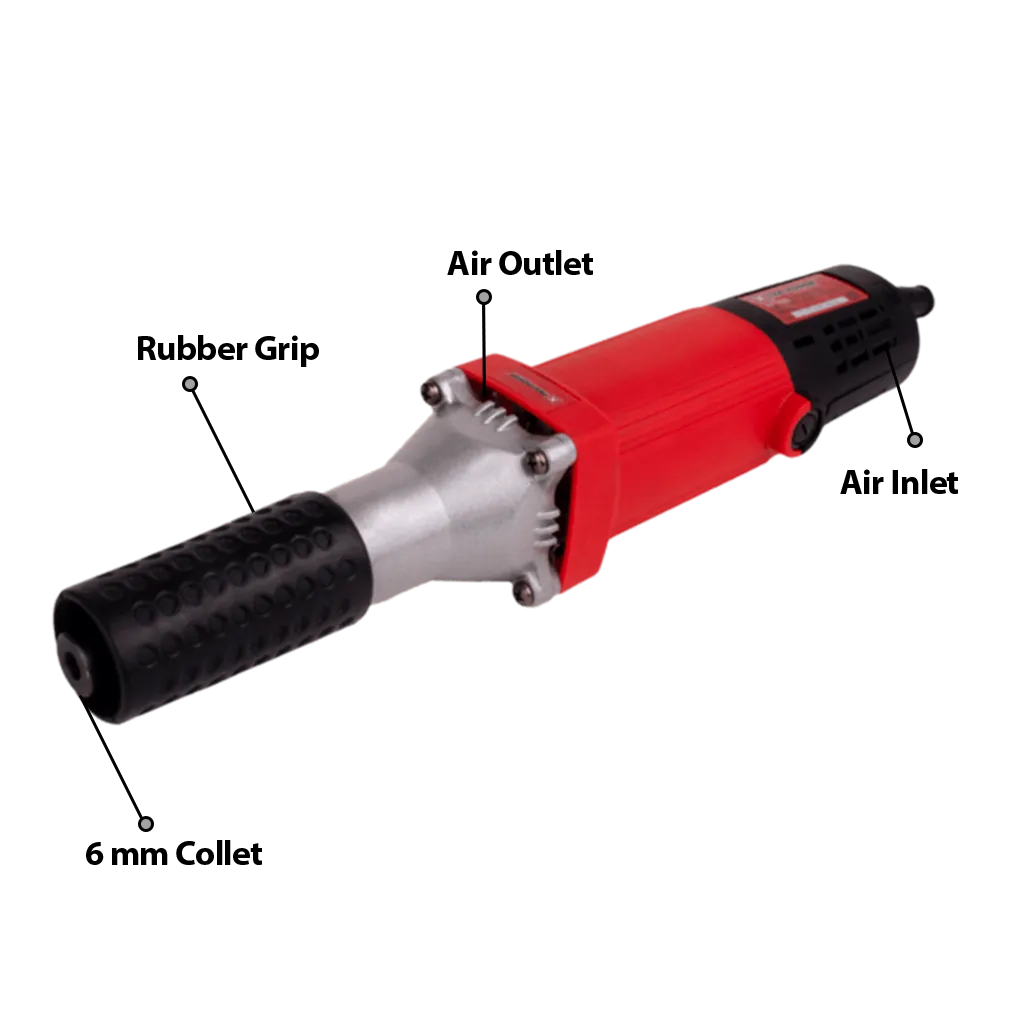 Do you like to do most of the grinding work with complete confidence? Get on the XTRA-POWER XPT 426 with a collet capacity of 25 mm. The XPT 426 die grinder is a portable power tool used to grind and polish materials (typically metal, but also plastic or wood). It arrives with a grinding switch. It generates a load-free speed of 27000 RPM for quick but reliable performance. The XPT 426 offers an unquestioning grinding workflow via an output of 400 watts. It is designed to have a firm and manageable grip on the magnificent body.