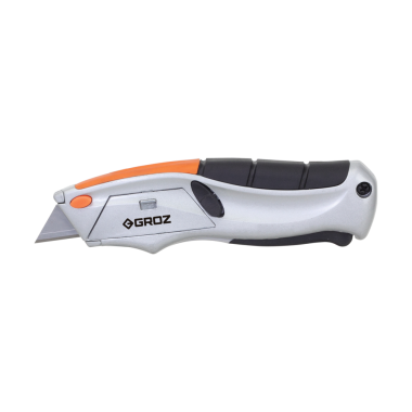 The Groz Retra Knife redefines cutting excellence with unwavering durability and precision. Engineered for continuous, non-stop usage, its rugged Zinc alloy body ensures prolonged tool life in the face of demanding tasks. The SK2 steel blades, meticulously hardened, exhibit superior edge retention, effortlessly handling tough cutting jobs. Each blade's unique inverting feature allows for extended use, and the quick-change blade operation ensures minimal downtime. The ergonomic TPR handle, featuring a thumb groove, enhances grip and ease of use. Available in three variants – Mini, Professional and Regular knife types. Versatile across various materials, from plastic to wood, the Groz Retractable Knife is your trusted companion for relentless cutting challenges.