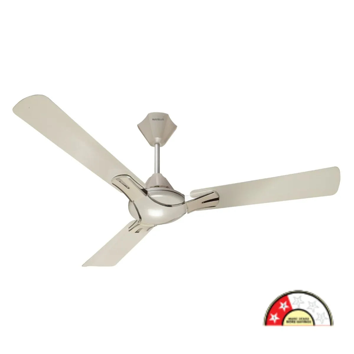 Finish Decorative fan with complementary trims on body and blades Performance Optimum performance even at low voltage Style and Finish Unique canopy design Guarantee 2 Year Star Rating 2 Star