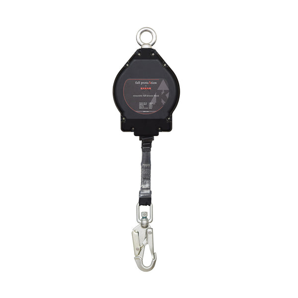 - The anchorage eye comes with a swivel action, preventing any undue twisting of the retracted lanyard (rope or webbing) while working, or in the event of the fall.