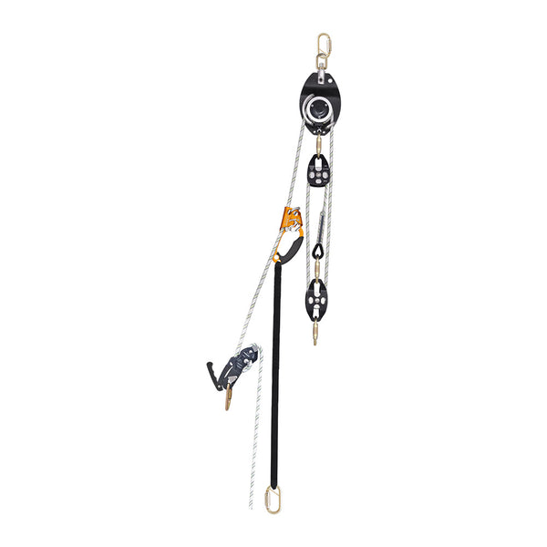 To raise and lower the mass/load/material with ease. The device is also used for either raising or lowering the mass/load/material to the ground or the next accessible level.