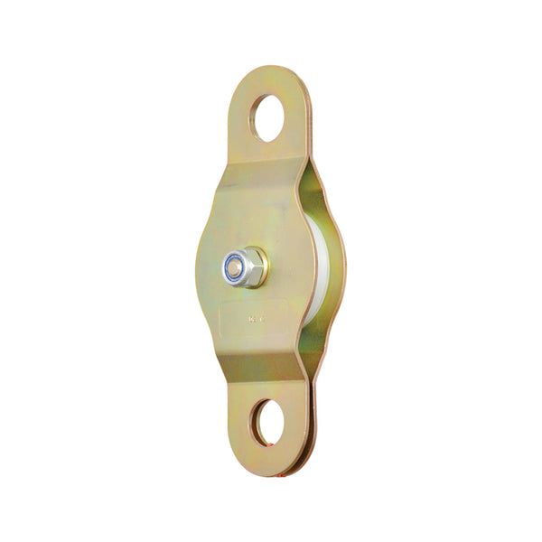 A steel single pulley with a single side attachment refers to a pulley system that features a pulley made of durable steel with a fixed attachment point on one side. The steel construction provides excellent strength and resilience, making it suitable for demanding applications. The single side attachment allows for easy mounting to a support structure, such as a beam or bracket, providing stability and secure anchoring. This configuration enables efficient redirection of forces or changes in direction within the system. The steel pulley's robust design ensures long-lasting performance and reliability, making it a versatile choice for lifting, rigging, and mechanical systems where durability and strength are paramount.
