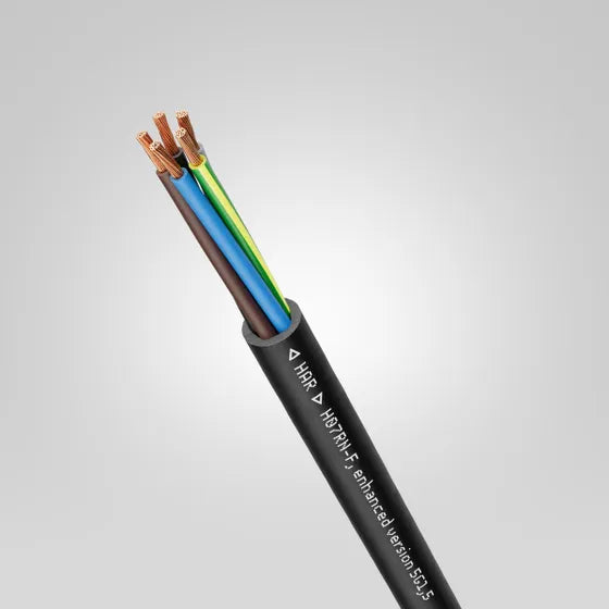The H07RN-F Enhanced Version 3G2.5 is a flexible, rubber-insulated cable featuring three conductors, each with a 2.5mm² cross-sectional area. This enhanced version is designed to offer superior durability and resistance to harsh environmental conditions, such as high temperatures, oils, UV radiation, and mechanical stress. It is ideal for industrial, commercial, and outdoor applications that require reliable and flexible power transmission. Commonly used in power distribution, machinery, and portable equipment, this cable ensures long-lasting and secure electrical connections, providing enhanced performance and resilience in demanding environments.