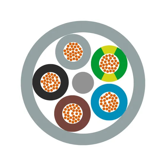 The ÖLFLEX® CLASSIC 100 H 5G16 is a flexible and durable power and control cable designed for industrial applications that require high power and robust performance. It features PVC insulation and an outer sheath, providing excellent protection against mechanical stress, abrasion, and environmental factors. With a 5-core (5G) configuration and a 16mm² cross-section, this cable is ideal for medium to high-power applications in machinery, automation, and control systems. Its flexibility allows for easy installation in confined spaces, while its strong construction ensures long-lasting, reliable performance in demanding environments.