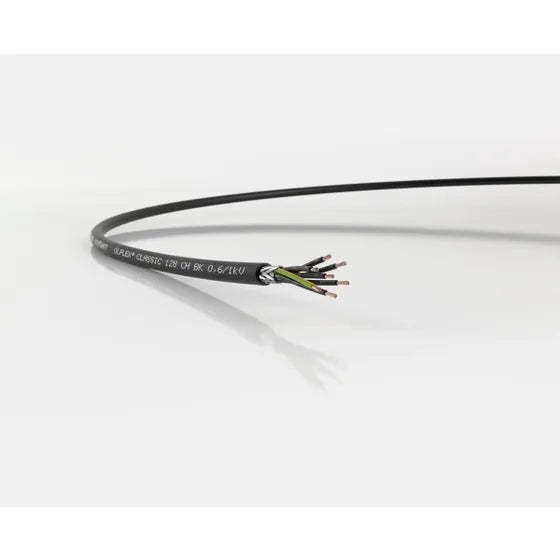 The ÖLFLEX® CLASSIC 128 H BK 0,6/1 KV 4G6 is a flexible, screened control cable with four conductors, each with a 6.0 mm² cross-section. Rated for 0.6/1 kV, it is designed for medium-voltage applications in industrial environments. The cable ensures reliable power and signal transmission, with high protection against electromagnetic interference (EMI) through its shielding. It is highly resistant to mechanical stress, abrasion, and environmental factors, making it ideal for use in machinery, automation systems, and control equipment, ensuring long-lasting, high-performance operation in demanding environments.