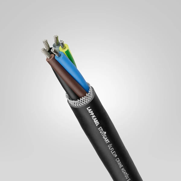 The ÖLFLEX® CRANE NSHTÖU 5G6 is a high-performance, flexible cable designed for crane and industrial applications. Featuring 5 conductors, each with a cross-sectional area of 6mm², it provides reliable power and control in demanding environments. This cable is highly resistant to oils, greases, mechanical stress, and harsh weather conditions, ensuring long-lasting durability. Ideal for heavy-duty machinery, the ÖLFLEX® CRANE NSHTÖU 5G6 delivers excellent flexibility and protection, making it a dependable solution for industrial applications that require high performance and robust protection under extreme conditions.