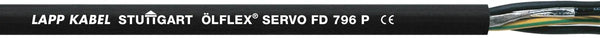 The ÖLFLEX® SERVO FD 796P 4G6+(2x1)+(2x1,5) is a flexible and high-performance servo cable designed for industrial automation and motion control systems. It features four 6 mm² power cores for reliable power transmission, along with two 1 mm² cores and two 1.5 mm² cores for signal or control connections. The cable is shielded to minimize electromagnetic interference (EMI) and is equipped with a durable, oil-resistant polyurethane outer sheath, ensuring exceptional protection in dynamic and harsh environments. Ideal for continuous flexing applications, it provides stable power and signal transfer with excellent flexibility and durability.