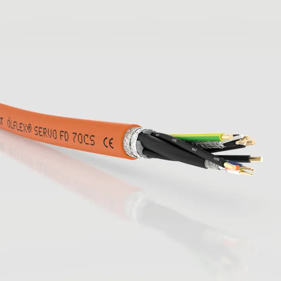 The ÖLFLEX® SERVO FD 7OCS (4G1,5+(2x0,75)+(4x...)) is a versatile and high-quality servo cable designed for industrial automation and motion control applications. It features four 1.5 mm² conductors for power transmission, two 0.75 mm² conductors for control or auxiliary circuits, and four additional conductors (unspecified). The cable is engineered for flexibility, resistance to mechanical stress, and superior shielding against electromagnetic interference, ensuring reliable and efficient signal and power transmission. Ideal for use in robotics, servo motors, and other automation equipment, it performs well in dynamic and demanding environments.