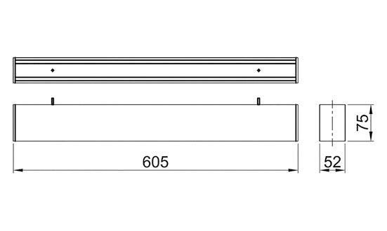 Type of Luminaire Baseight Linear LightHigh Efficacy Linear(Slemdo ADV) Set Model No. PLHM10148 Type of Light Source LED Power Input 14w System Lumen Output 1540 lm System Efficacy 110 lm/W Power Voltage 220-240V Power Factor 0.95 Lifetime 50000H(L70) CCT 4000K CRI 80 SDCM Input Frequency 50Hz Dimming non-Dimmable Dimming Range UGR Glare Cut Angle Beam Angle 120deg. Rotation Angle Tilt Angle IP code 20 IK code Ambient Temperature Range 0- 45°C Surge Protection Classification of Luminaries THDi <10% Effective Projected Area Driver External Cut Out Size Dimensions 55mm*605mm*75mm Weight 1.032kg Body Aluminium Extrusion Reflector Diffuser PMMA Trim Caseing Country of Origin India Brand Panasonic Remarks