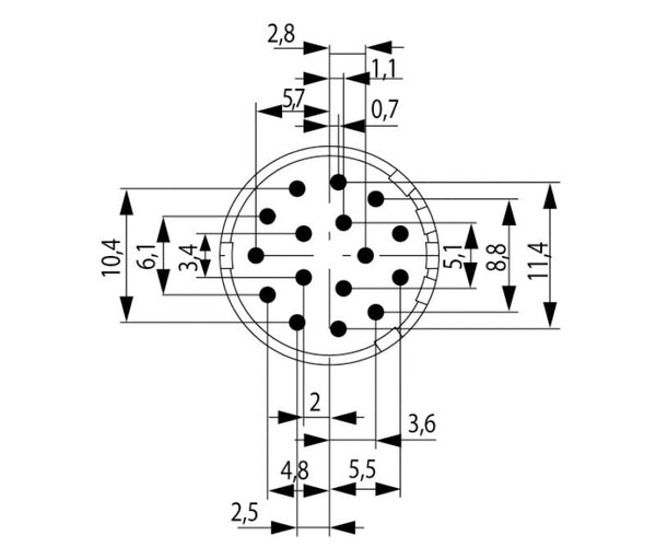 The SAI-M23-BE-16-F is a 16-pin M23 connector designed for industrial automation and control applications. The F likely refers to a sealing feature, providing protection against dust, moisture, and other environmental elements. This connector ensures secure and reliable power and signal transmission, making it ideal for use in harsh environments like machinery, automation systems, and industrial control systems.
