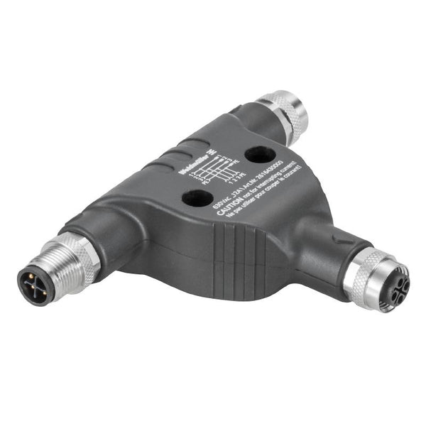 The SAI-T-M12-T is an industrial connector featuring an M12 design, widely used for power and signal transmission in automation and control systems. The T indicates a T-shaped configuration, commonly used to split signals or power between multiple devices. This connector is ideal for use in industrial machinery, sensor-actuator connections, and other applications requiring secure, reliable, and compact connectivity in demanding environments.