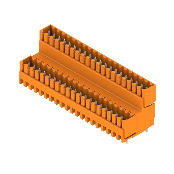 The SLD 3.50V/40/180G 3.2SN OR BX by Weidmueller is a reliable and durable PCB terminal designed to provide secure electrical connections. It offers a 3.50 mm pitch, 40 positions, and a 180-degree vertical orientation for optimal signal transmission. The robust orange housing enhances visibility, making it an excellent choice for industrial, automation, and electronic applications that require long-lasting performance and high reliability.