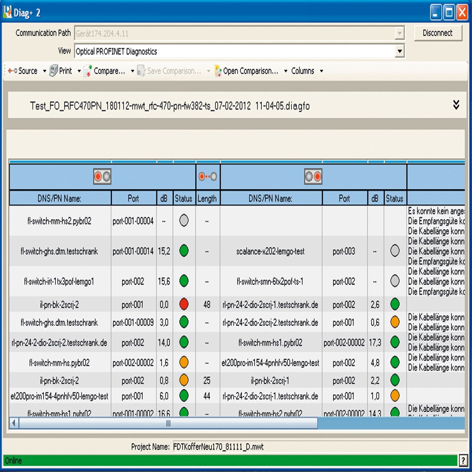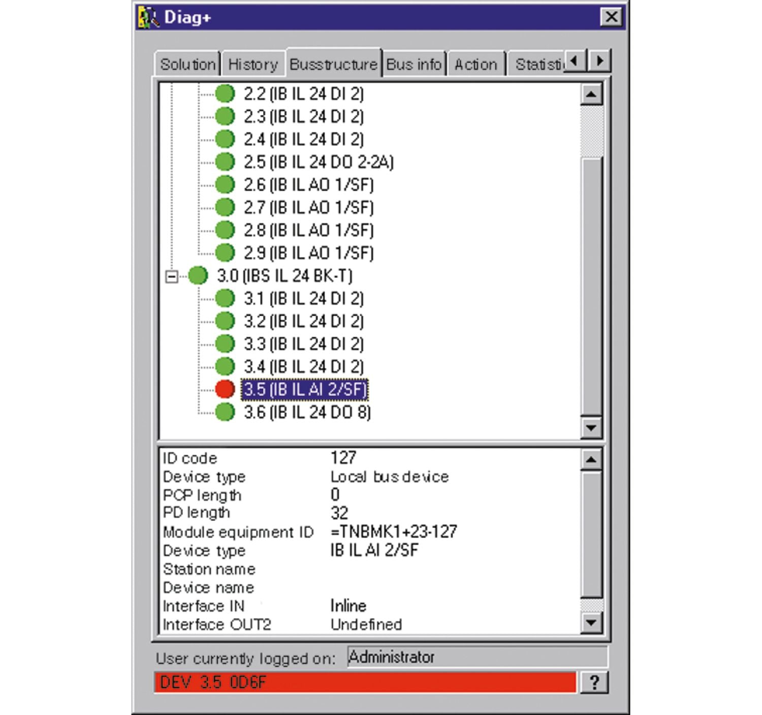 Diag+, diagnostic software for INTERBUS and PROFINET networks, additional areas of application are, for example, commissioning and maintenance.