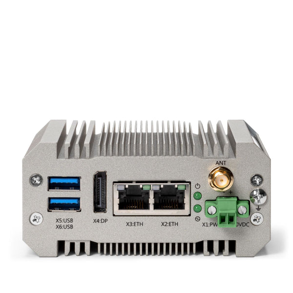 IP30-rated fanless industrial box PC (BPC) with energy-efficient Intel® Celeron® N3350 processor with 32 GB eMMC mass storage, 64 GB M.2 SSD, 2x COM ports, Windows 10 Enterprise 2019 LTSC operating system and Wi-Fi.