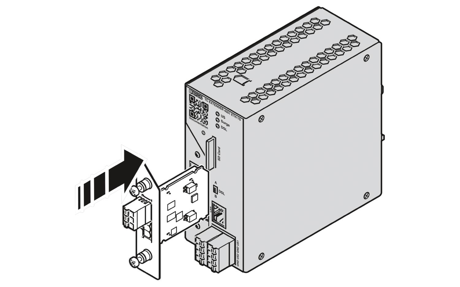 Replaceable surge protection module, only for Ethernet extender TC EXTENDER 4001 ETH-1S (2702253), 1 SHDSL port, two-wire protection for floating SHDSL cables, two-level protective circuit