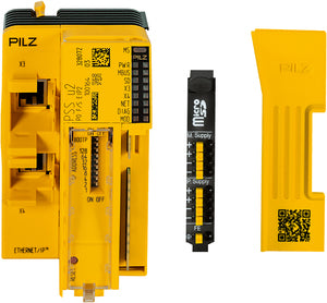 PSS u2, head module, performance index P0, control system I/O, failsafeand standard, 2 RJ45 ports, EtherNet/IP adapter with CIP Safety, supports BOOTP, integral power supply, infeed module supply 24 V DC 1.2 A, infeed periphery supply 24 V DC 8 A, potential isolation, connection functional earth, for microSD card integrated in the terminal block, with protective plate.